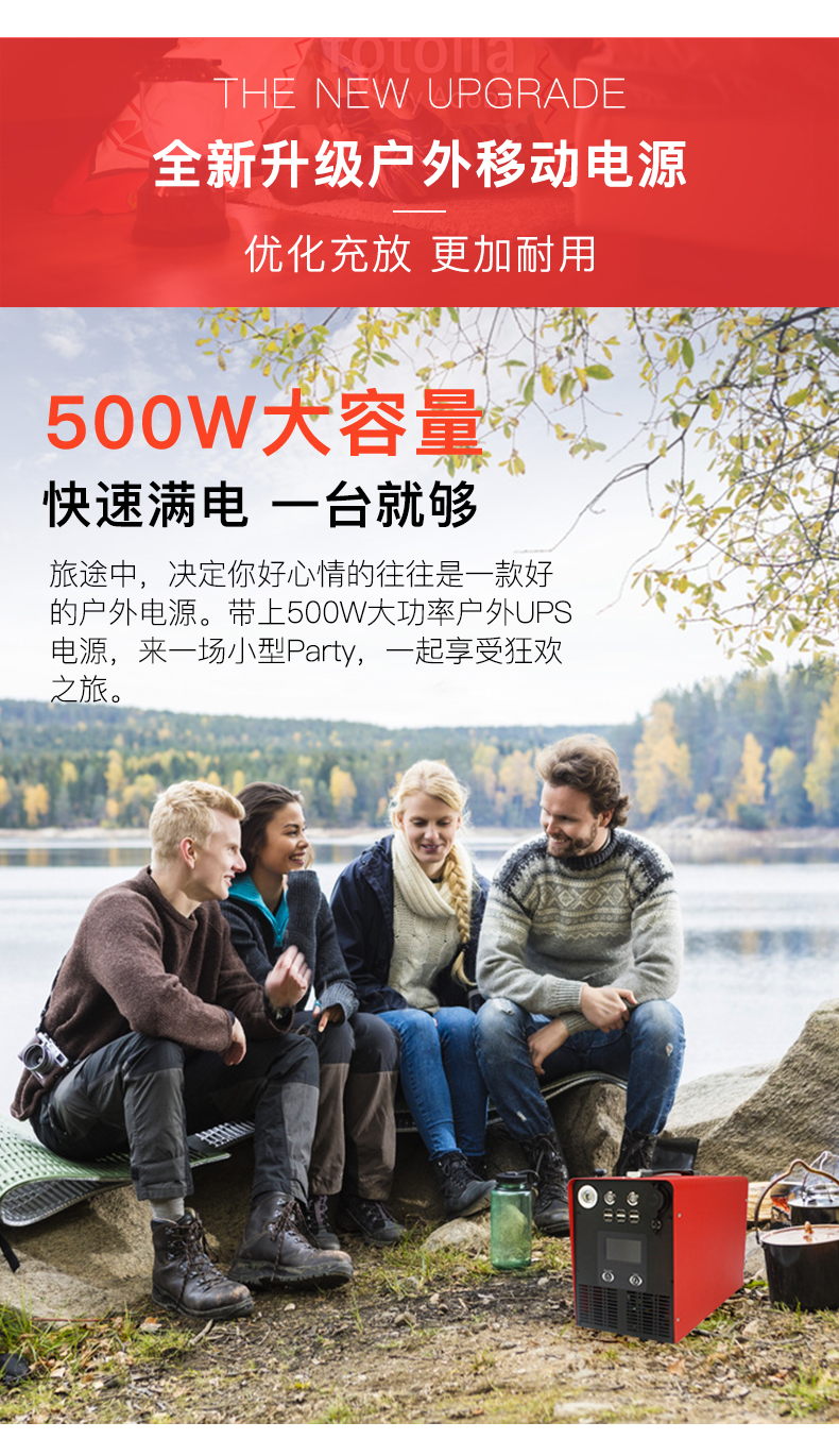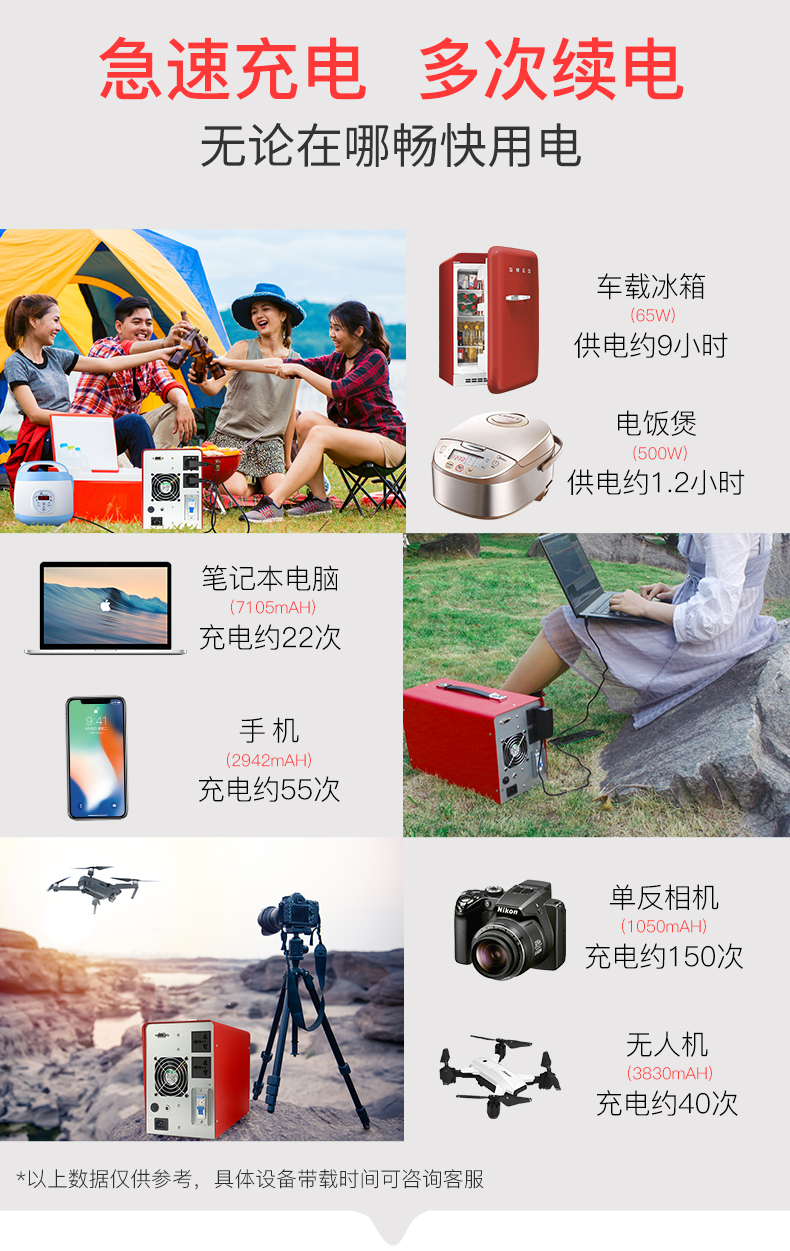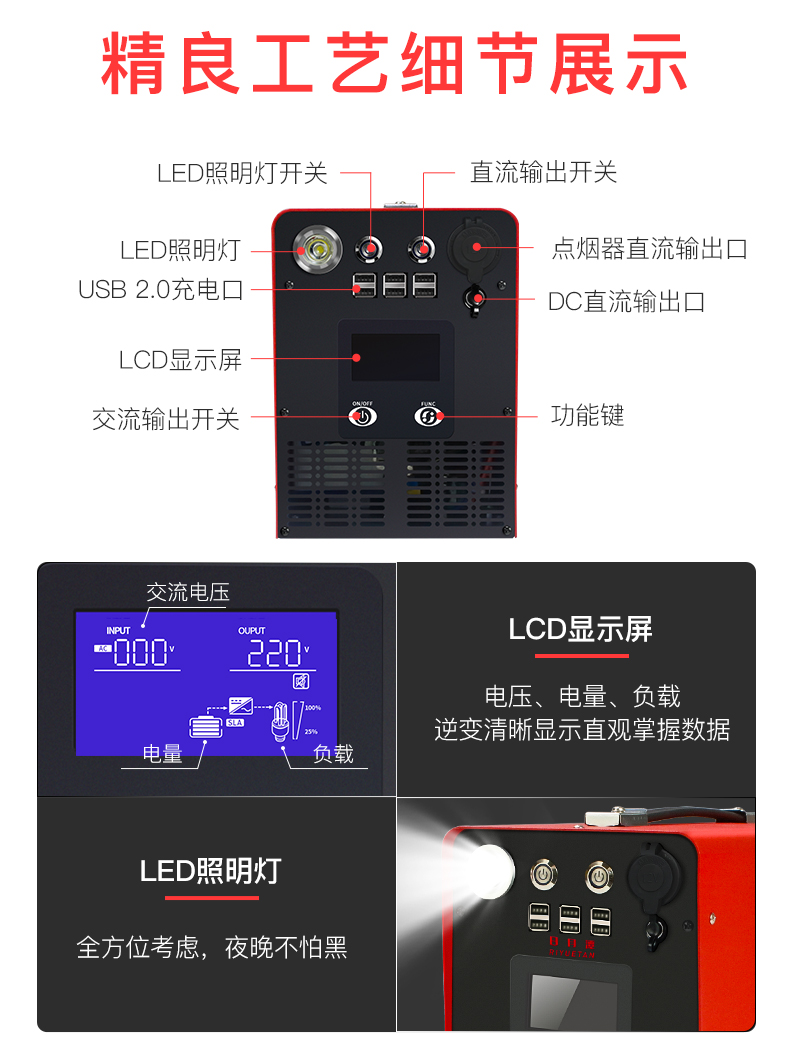 豪门国际户外电源220V笔记本电脑房车户外摆摊露营停电备用应急移动便携大功率锂电池,是移动电源与ups的结合体,实现边充边放功能,多U口输出,带LED手电及屏幕数显