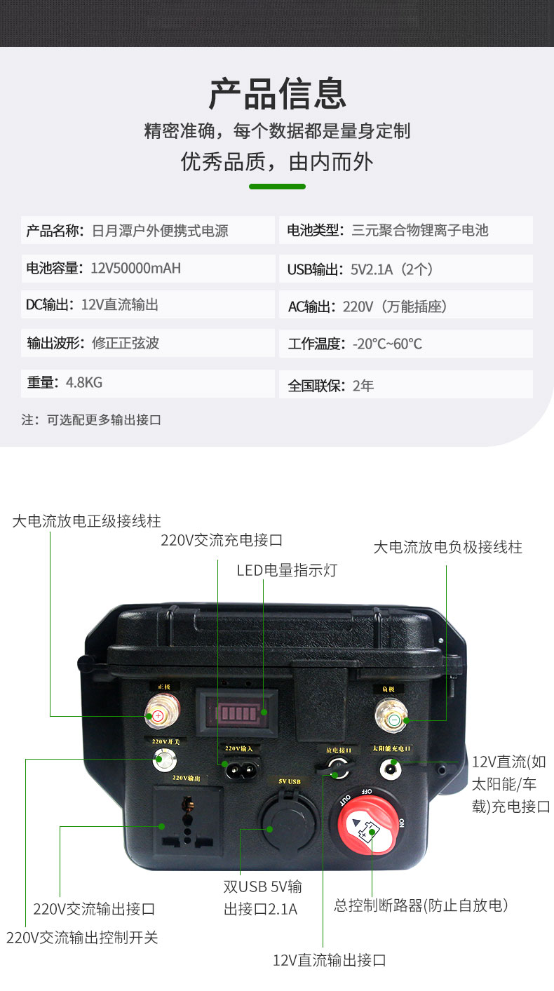 简单介绍:大容量修正弦波输出,支持太阳能、汽车充电,超长续航AC/DC/USB多种充电模式。适用于电脑、无人机、房车、车载冰箱、户外露营,夜市摆摊等...