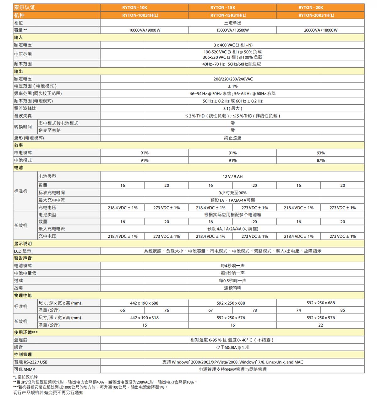 简单介绍:豪门国际UPS电源RYTON-H系列1KVA-10KVA产品采用高可靠性设计,通过工厂严密的生产工艺把控,带给用户非常好的应用体验。此系列产品能够实现在线双转换、卓越的微处理器、超宽市电输入范围,国际标准的安规以及电磁兼容设计、高效的变频转换模式,兼容发电机输入等等。...