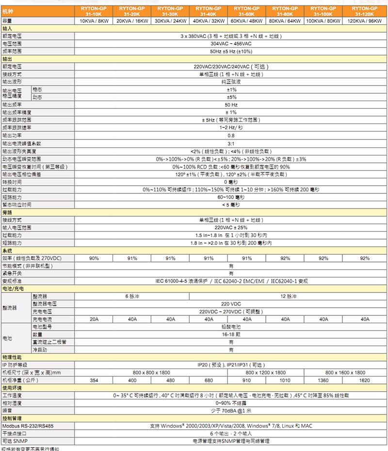 豪门国际UPS电源RYTON-GP 3/1系列产品特点: