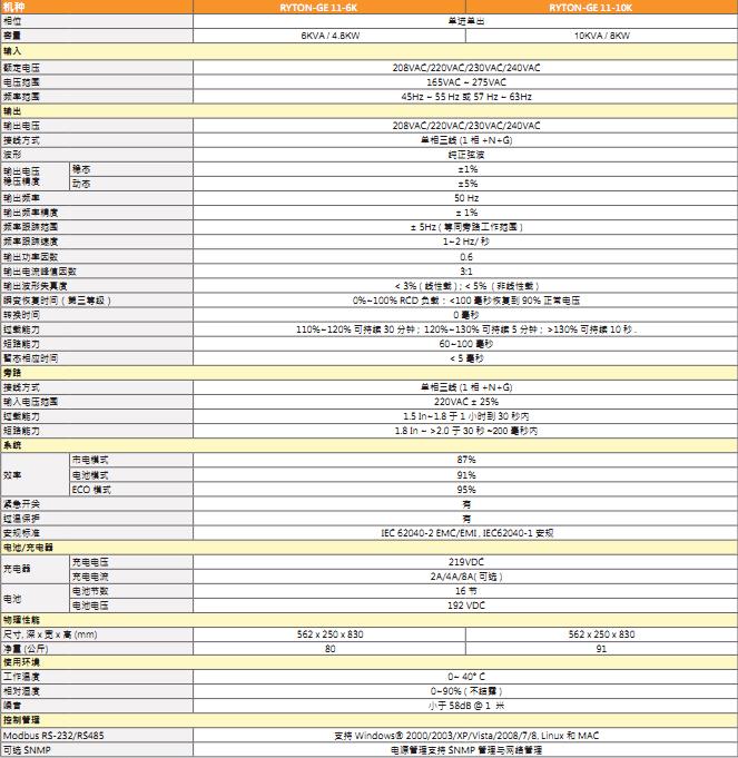 豪门国际UPS电源RYTON-GE 1/1系列产品特点: