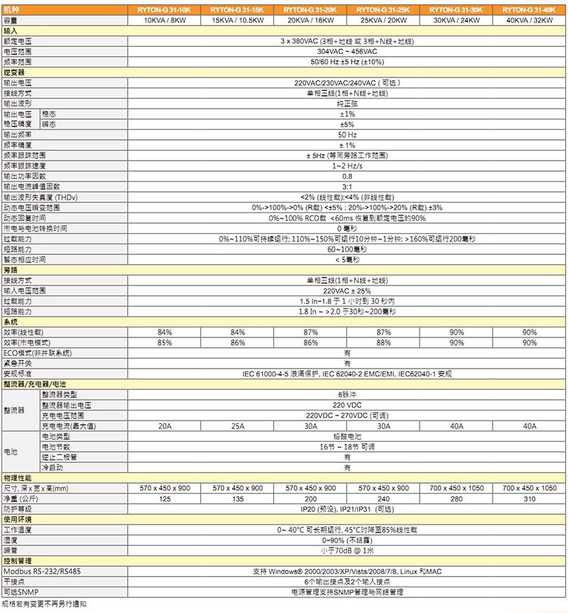 豪门国际UPS电源RYTON-G 3/1(220V)系列产品特点: