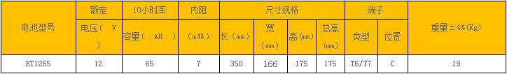 标准AGM铅酸蓄电池RT(6GFM)系列产品型号