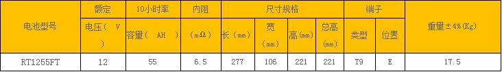 简单介绍:前置端子RT1275FT系列铅酸蓄电池:标称电压:12V;额定容量:55AH to 200AH;狭长型前置端子结构设计;耐腐蚀多元合金厚极板;重量、体积比能量高;内阻小,输出功率高;安全性优良,结构紧凑...