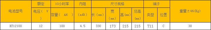 12V100AH RT(6GFM)系列UPS专用标准AGM铅酸蓄电池