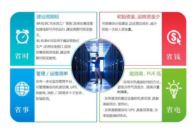 采用RSmart模块化数据中心建设方式具备省时、省钱、省电、省事四大优势可成就数据中心最佳TCO。