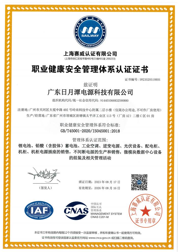 职业健康管理体系认证证书